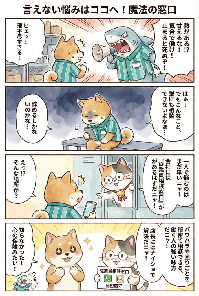 バイト先でのモヤモヤ、一人で抱えていませんか?😣 実は会社には、こっそり相談できる「従業員相談窓口」があります!秘密厳守であなたの味方になってくれる場所、ぜひ知っておいてね✨